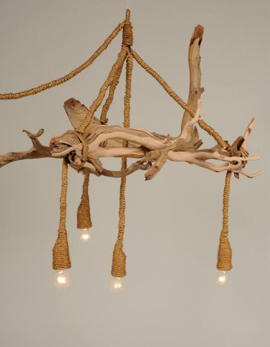 Na donjim fotografijama možete vidjeti još nekoliko modela lustera i svjetiljki izrađenih od drva, a koje možete napraviti i sami. Kako napraviti luster vlastitim rukama od drveta. Kako napraviti žarulju niti, plastičnih boca, perli, drva, tkanine?